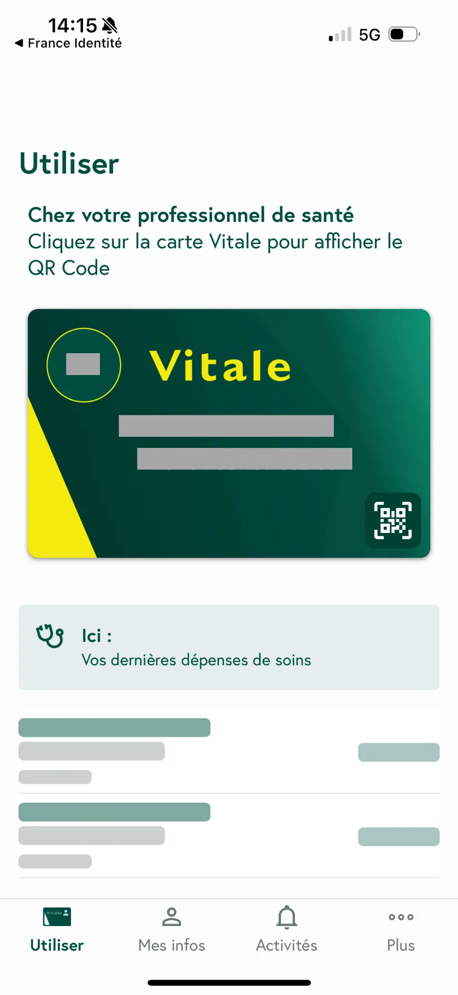 Elle permet aussi de visualiser les dépenses des 7 derniers jours liés à la carte Vitale.