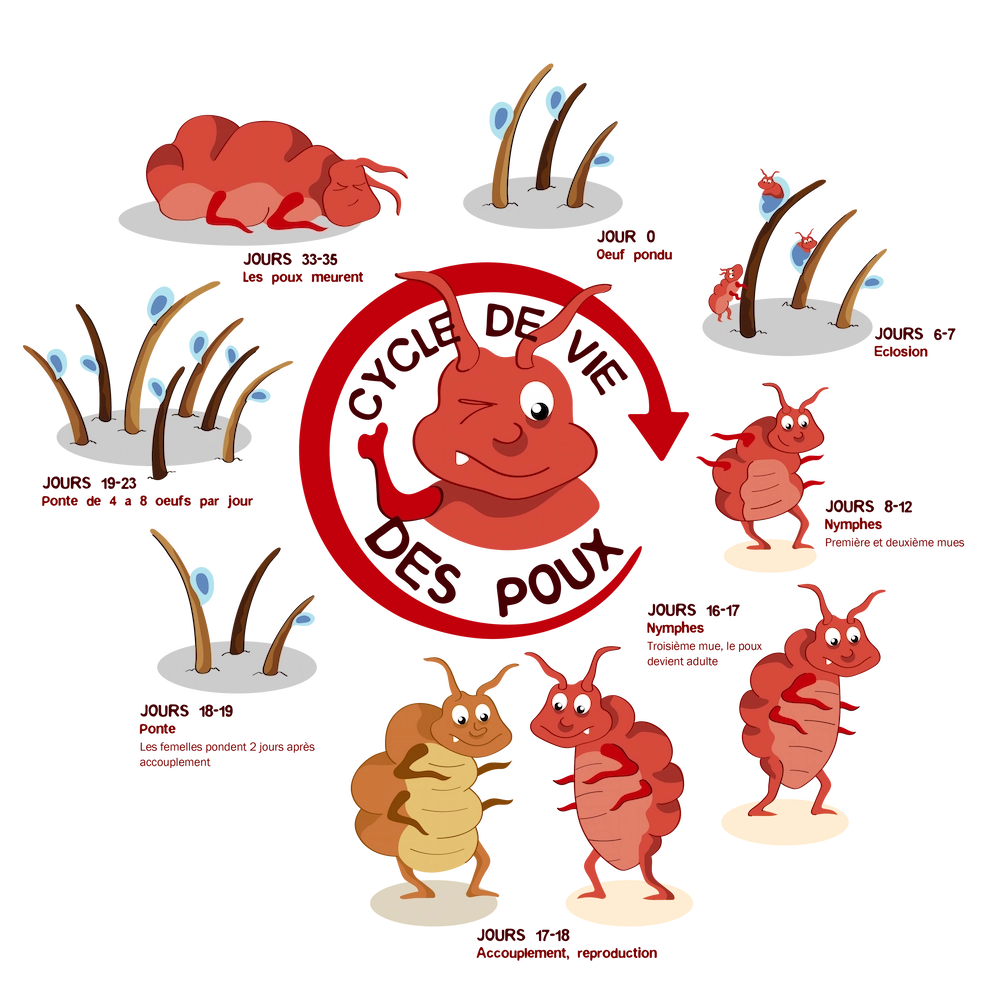 - Le pou adulte : il peut vivre jusqu’à 30 jours sur le cuir chevelu.