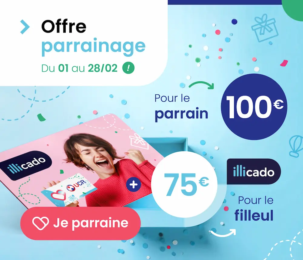 En février, nous doublons vos gains en cas de parrainage ! Vous recevez 100 € en carte illicado, contre 50 € habituellement. Ne laissez pas passer cette occasion unique.